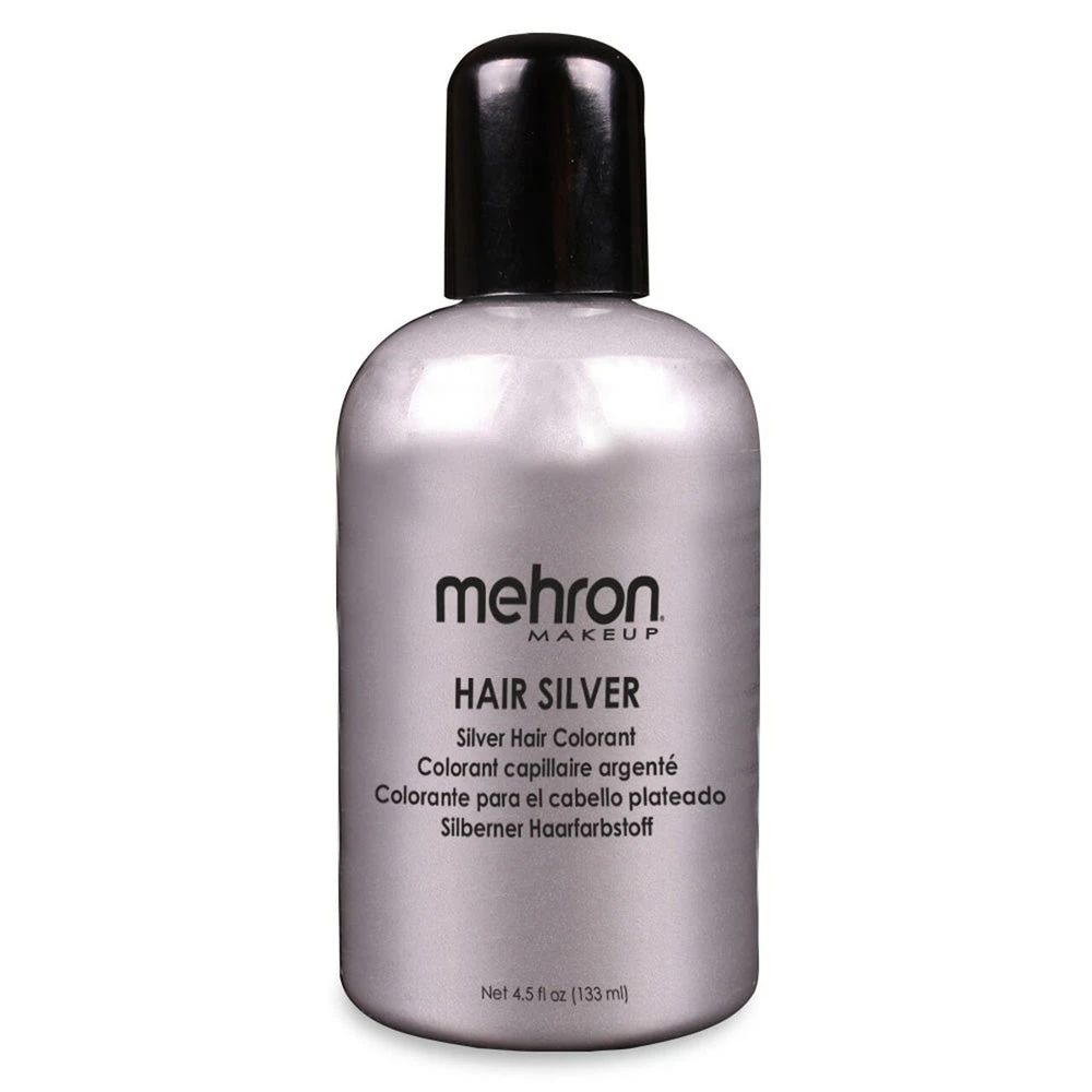 Mehron’s Hair White and Hair Silver are professional hair colorings used by makeup artists all over to achieve a natural aging look in performer’s hair. These hair colors are formulated to be safe, non-toxic hair coloring that can be used night after night for long performances. The water-based formula will not damage hair and cleans up easily with soap and warm water.