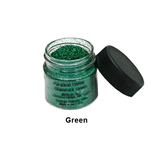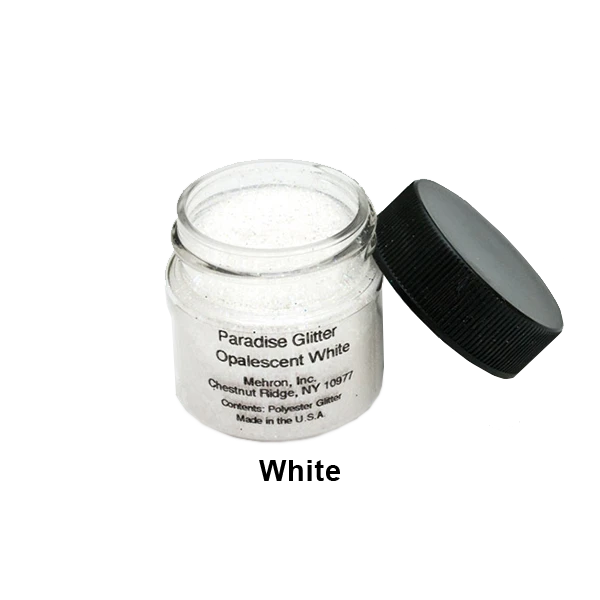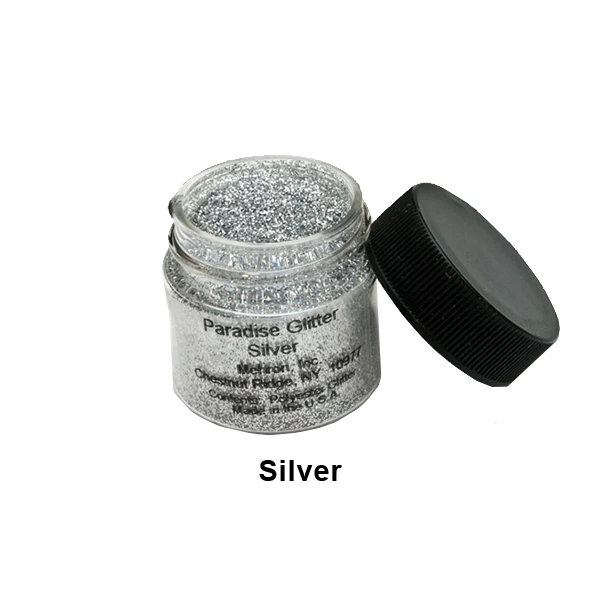 These dramatic glitters allow you to achieve ultra-reflective looks that draw attention! Mehron’s shimmering full-size glitter particles produce bold dramatic effects. Paradise Glitter reflects light with a brilliant, sparkling luster. Available in a .25 oz. size and a full range of vibrant colors.