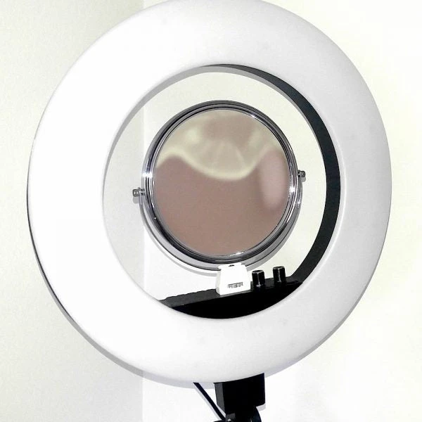 Tuscany Pro 14″ LED Ring Light w/ Brush Holders, Cell Phone Holder & Mirror Ring light efficiently removes sharp shadows and is especially ideal for beauty facial photo-shoot. It is easy to set up, mountable on any light stand and compatible with DSLR camera with hot shoe mount adapter. With a light diffuser, it produces neutral color and evenly spread light stream for better photo-shoot environment.
